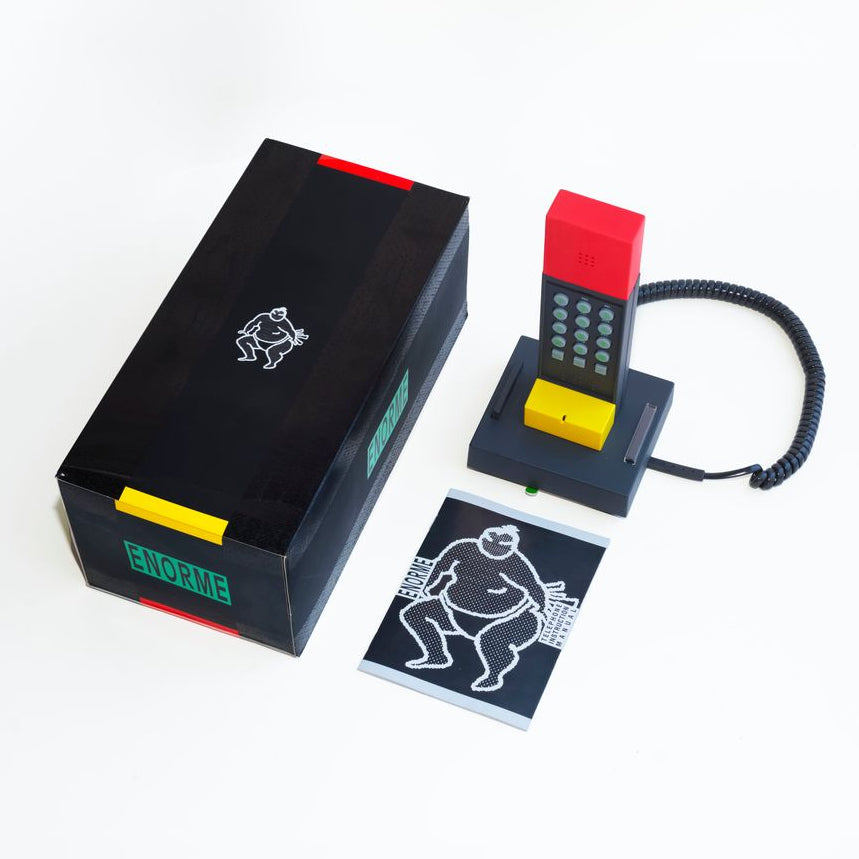 Produced in 1985, the ENORME telephone was the brainchild of Memphis founder Ettore Sottsass, IDEO founder David Kelley, and investor Jean Pigozzi.
